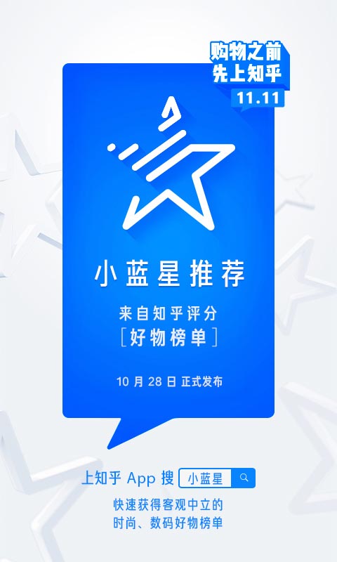 上知乎,搜「小蓝星」,快速获得客观中立的时尚、数码好物榜单。