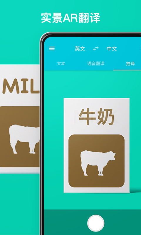 拍照翻译:强大的OCR摄像头取词和拍照翻译功能,一拍即译,无需手动输入便可快速翻译英语、日语等多种语言,满足出国翻译、旅行翻译、旅游购物翻译、英语学习翻译等需求。