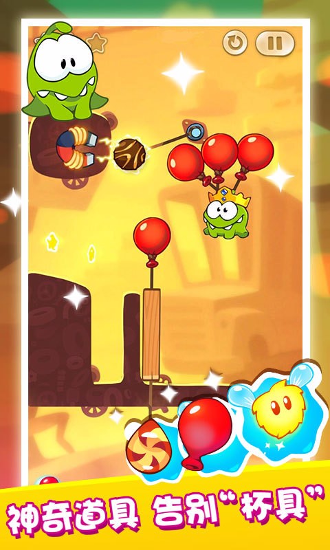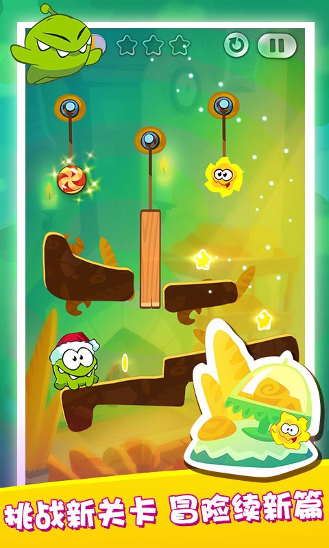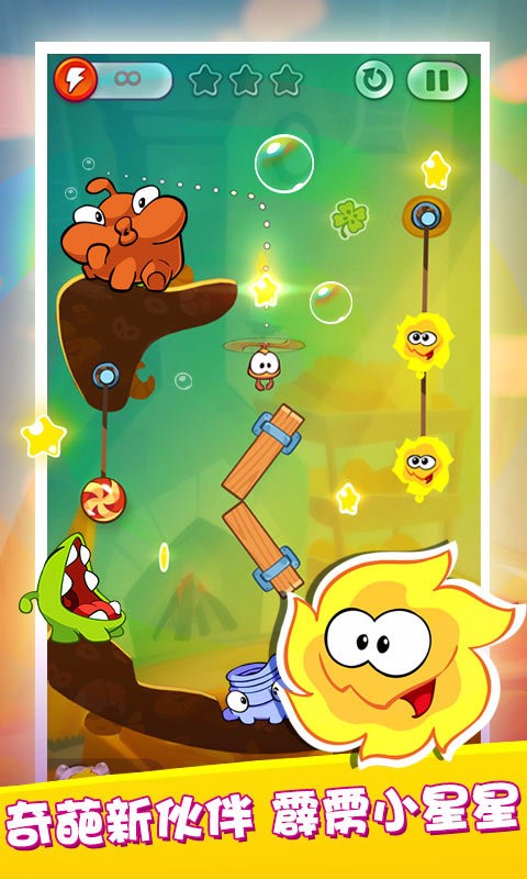 哪里有美味糖果,哪里就有小吃货奥姆(Om Nom)的身影。不甘寂寞的它,在路上结识了六位新伙伴,为大家带来一场美食的大冒险。只需手指轻轻滑动割断绳子,让糖果穿过幸运星星送到小吃货嘴里,即为成功!在这趟旅途中,各式各样的奇妙经历等你去探险哦~