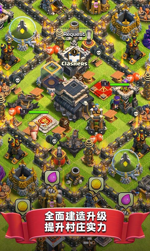 怒气冲天的大胡子野蛮人、爱玩火球的法师,还有其他个性突出的兵种待您招入麾下。进入Clash世界!